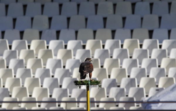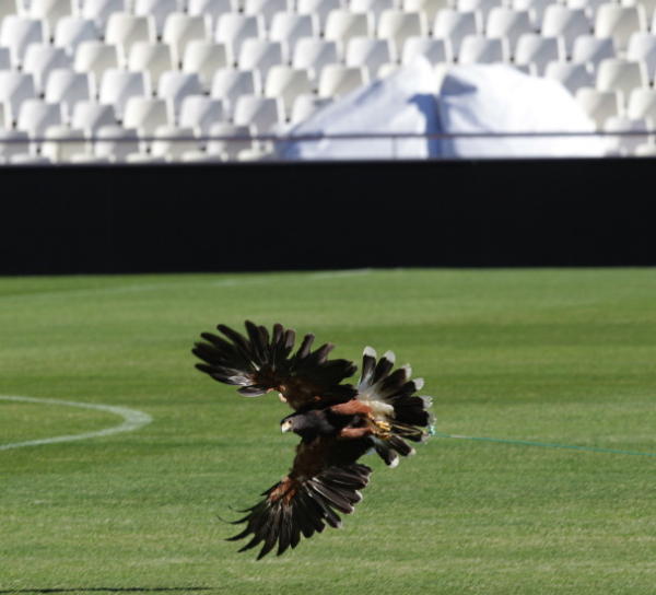 Así es, ahora tres águilas y un búho vigilan el estadio de Mestalla. Su objetivo es ahuyentar a las palomas y tratar de romper los nidos existentes en el escenario ché, dado que así evitan que estas aves se coman las semillas del césped recién replantado y a su vez brindan tranquilidad a los funcionarios de mantenimiento. Los empleados del estadio valencianista estaban realmente preocupados por el tema y las palomas les causaban más de un dolor de cabeza últimamente, pero el problema terminó, los guardianes son infalibles.