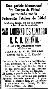 El equipo era el que era, la puesta en escena también, pero hay que apuntar algún intento de manipulación (no se sabe con que fin), como el hecho de que varias fuentes señalen que existía un jugador del Español en una de las alineaciones de la selección barcelonesa. Hasta donde ha podido saber el autor de este artículo, esta afirmación es falsa.
