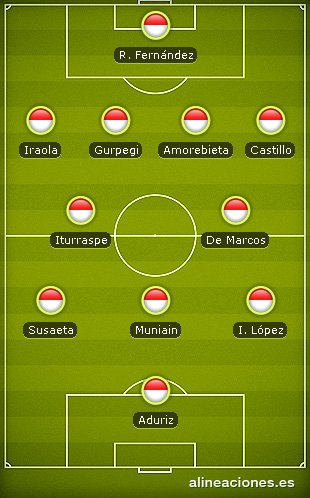 Convocatoria Athletic Club: Iraizoz, Toquero, Amorebieta, San José, Iturraspe, Llorente, De Marcos, Ibai, Raúl, Susaeta, Iraola, Isma López, Gurpegi, Muniain, Aduriz, Castillo, Ekiza y Ruiz de Galarreta.
