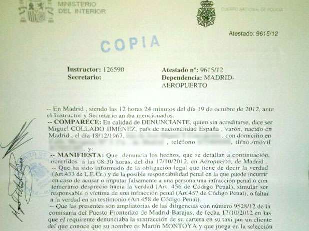 El medio digital, que cita al taxista en cuestión como fuente principal, adjunta además una imagen de la denuncia en la que se puede leer un caso que resulta de lo más extraño. Según declaraciones del taxista, notó que le faltaba la cartera después de haber llevado a Montoya en su coche, así que se acercó a la recepción de su hotel para intentar recuperarla.