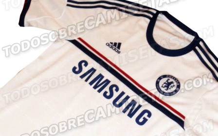 El conjunto inglés del Chelsea ya tiene nueva camiseta como visitante para la temporada 2013 2014. Desde www.todosobrecamisetas.com han filtrado una imagen de la nueva elástica a domicilio para la próxima campaña. Una camiseta que introduce el color blanco como tono principal, así como dos franjas horizontales roja, azul y blanca. De esta forma sustituiría la camiseta blanca con la franja diagonal celeste que el Chelsea introdujo durante esta campaña, así como la más oscura con una franja amarilla.