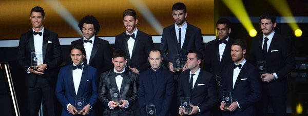 Sergio Ramos acudió junto a varios de sus compañeros de equipo, quienes han sido seleccionados junto con el central de Camas, en el once ideal de la Fifa del año 2012. Con ello, cinco jugadores del FC Barcelona como son Dani Alves, Gerard Piqué, Xavi Hernández, Andrés Iniesta y Leo Messi; otros cinco como son Iker Casillas, Sergio Ramos, Marcelo, Xabi Alonso y Cristiano Ronaldo representando al Real Madrid; y el colombiano Radamel Falcao (COL/Atlético de Madrid) forman el once ideal del año, designado hoy en la Gala FIFA del Balón de Oro. Un once ideal compuesto en su totalidad por jugadores de la Liga BBVA, situando a la liga española como la mejor liga del planeta.