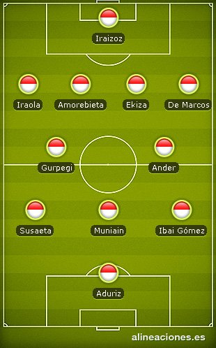 Bajas Athletic: Galarreta (lesión), Iñigo Pérez (lesión), Aurtenetxe (lesión), Laporte (sanción)