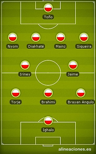 Bajas Granada: Fran Rico (lesión), Benítez (lesión), Machís (Copa de África), El Arabi (Copa de África), Iñigo López (sanción), Mikel Rico (sanción)