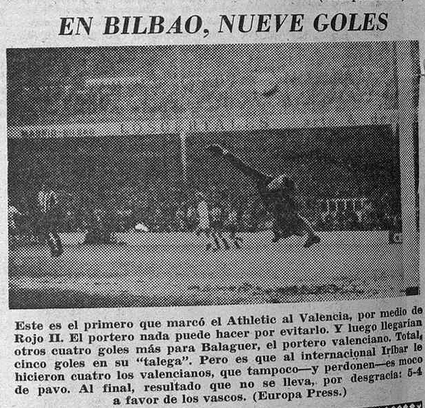 Y volamos a Diciembre de 1975. Valencia y Athletic disputan su primer partido en San Mamés tras la muerte del dictador Franco. Aquel día el Athletic ofreció un auténtico recital en la primera media hora; los de Rafael Iriondo marcaron nada menos que cinco goles. El correctivo para los valencianos fue muy severo, y se marcharon al descanso con un contundente 5-1 en contra. Pero en el segundo tiempo, liderados por el tulipán Jhonny Rep, estuvieron cerca de darle la vuelta a un marcador de locos, que era ya en 1975 un resultado de otra época, 5-4. Así lo recordaba la desaparecida Hoja del Lunes al día siguiente.