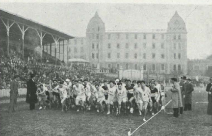 Tras la Guerra Civil, los dos equipos vivieron épocas de conocida rivalidad gracias a sus excelentes jugadores. El primer enfrentamiento liguero que disputaron en San Mamés tras el conflicto bélico estuvo marcado por la gran cantidad de goles que se anotaron. El Athletic ganó 7-5 en una tarde en la que Francisco Gárate y Pedro Pascual rivalizaron en efectividad. Años después, uno de los mejores centrales de la historia del fútbol español, Jesús Garay, abandonó el Athletic de Bilbao con dirección al Barcelona tras haber permanecido en la disciplina vizcaína diez temporadas. Aquel traspaso fue decisivo para el estadio de San Mamés, ya que con el dinero recaudado se construyó la tribuna Norte, conocida como "Tribuna Garay". En la imagen podemos observar una antigua estampa de "La Catedral", escenario también de eventos atléticos durante los años treinta.