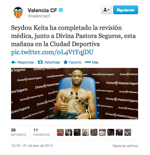 10h20: Keita supera el reconocimiento médico con el Valencia