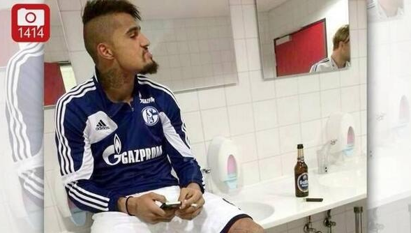 El futbolista del Schalke 04 pasó de esta guisa el control anti dopaje, mirando el móvil, fumando y bebiéndose una cerveza. "Prince se ha fumado un cigarrillo para relajarse un poco después de la bella victoria, mientras la cerveza se le dio adrede para ayudarle a orinar inmediatamente y acelerar el tiempo del antidoping", comentó como justificación el director deportivo del Schalke, Horts Held.