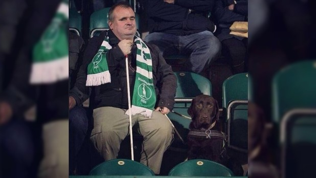 Un hincha invidente del Bohemians 1905 de la República Checa demostró a todos que el fútbol no se sigue con los ojos, sino con el corazón. Con bastón y perro lazarillo se plantó en las gradas del estadio Ďolíček, de la segunda división checa.