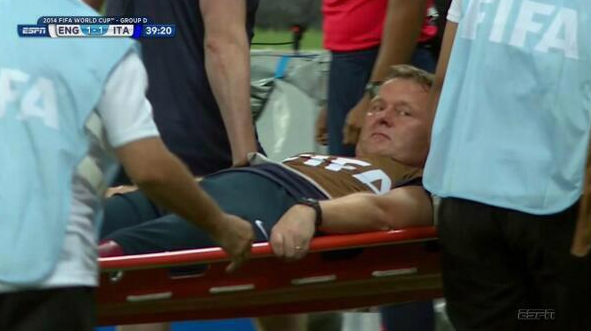 Inglaterra tuvo una pírrica participación en el pasado Mundial de Brasil, quedando última de un grupo donde quedó encuadrada con las selecciones de Italia, Uruguay y Costa Rica. El único momento destacable que nos dejó el combinado de los Tres Leones fue cuando su fisioterapeuta se lesionó en el banquillo y tuvo que abandonar el terreno de juego en camilla como si fuera un futbolista de tantos que habrá atendido.