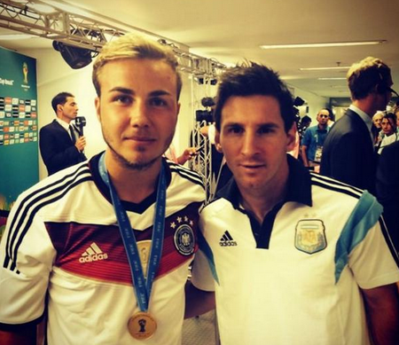 Mario Götze anotó el tanto decisivo para que Alemania se proclamara campeona del mundo derrotando por 1-0 a Argentina. A pesar de haber convertido con su gol a su país en campeón del Mundial, el futbolista del Bayern de Múnich no olvidó al concluir el partido pedirle a uno de sus ídolos, Leo Messi, hacerse una foto con él.