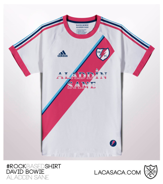De este modo, vemos camisetas de fútbol inspiradas en Yellow Submarine de Los Beatles, Aladdin Sane de David Bowie, Amnesiac de Radiohead, London Calling de The Clash, Random Access Memories de Daft Punk o Sticky Fingers de The Rolling Stones.