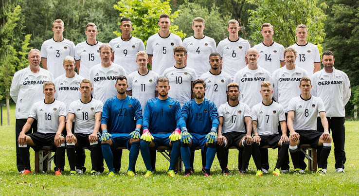 El combinado alemán que viaja a Brasil para disputar las Olimpiadas de Río de Janeiro no vestirá del mismo modo que la Selección Alemana que disputó la pasada Eurocopa de Francia. Esto es debido a que los futbolistas que han viajado a tierras latino americanas no representan a la federación alemana de fútbol. A pesar de esto, los diseños mantienen el mismo patrón.