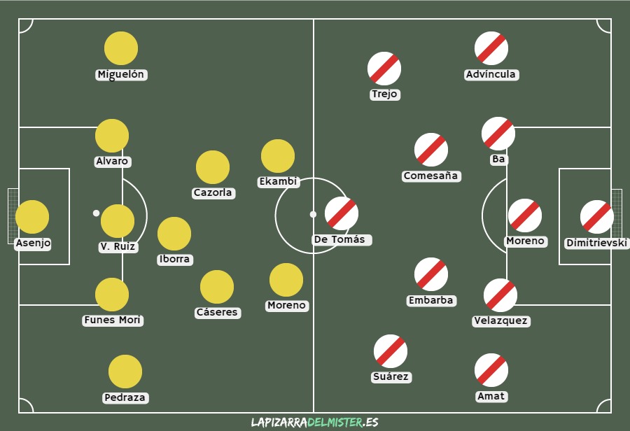 Duelo directo en la lucha por no descender. Dos esquemas parecidos se enfrentarán en el Madrigal con la meta de sacar los tres puntos, coger un respiro y hundir al rival en la zona roja. La clave de este encuentro pasará por el medio campo donde aparecen nombres propios vitales como el de Santi Cazorla por el lado del Villarreal y Comesaña por el lado del Rayo Vallecano. Ojo a este partido que, pese a no prometer muchos goles, da la sensación de tener.