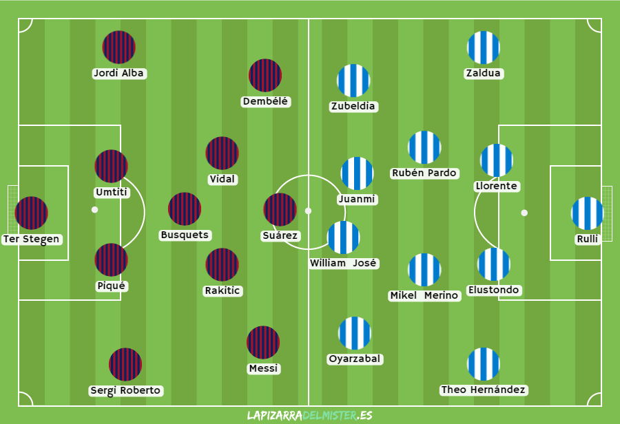 Ya con el campeonato casi cerrado, el FC Barcelona intentará dar un paso más hacia el titulo matemático cuando reciba a la Real Sociedad, en un duelo bastante complicado debido a la fuerza con la que viene el conjunto vasco. La clave estará en el mediocampo donde, sin Arthur, el conjunto culé tendrá que intentar vulnerar el bloque solido que conforman Ruben Pardo y Mikel Merino. Por otro lado, con un Lionel Messi pletorico, será importante ver como la defensa de los vascos podrán detener el poderio ofensivo de los culé que, en el Camp Nou, son practicamente invencibles.