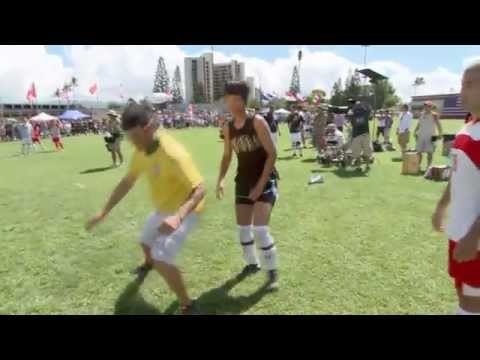 Vídeo con el rodaje de las escenas de fútbol de la película Batlleship en las que Rihanna prueba sus dotes con el balón. Mucho ojo al portero que necesita una colchoneta para tirarse.